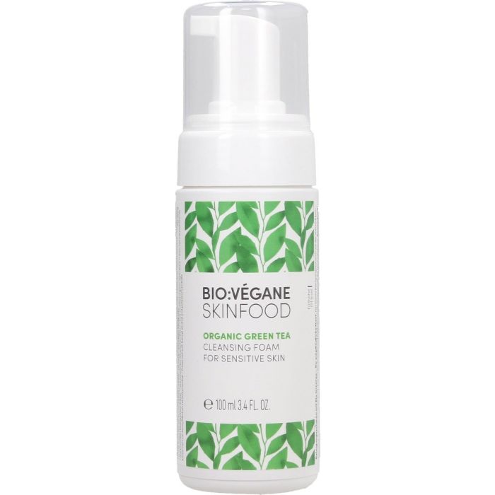 Ніжна очищувальна пінка BIO:VÉGANE з екстрактом органічного зеленого чаю, солодки, листя ґінко та оливкової олії ідеально підходить для заспокоєння подразненої та чутливої шкіри. Вона м’яко і ретельно видаляє макіяж та інші залишки забруднень шкіри, а також заспокоює та глибоко очищає її, зменшуючи почервоніння. Шкіра ідеально підготовлена до наступних етапів догляду.