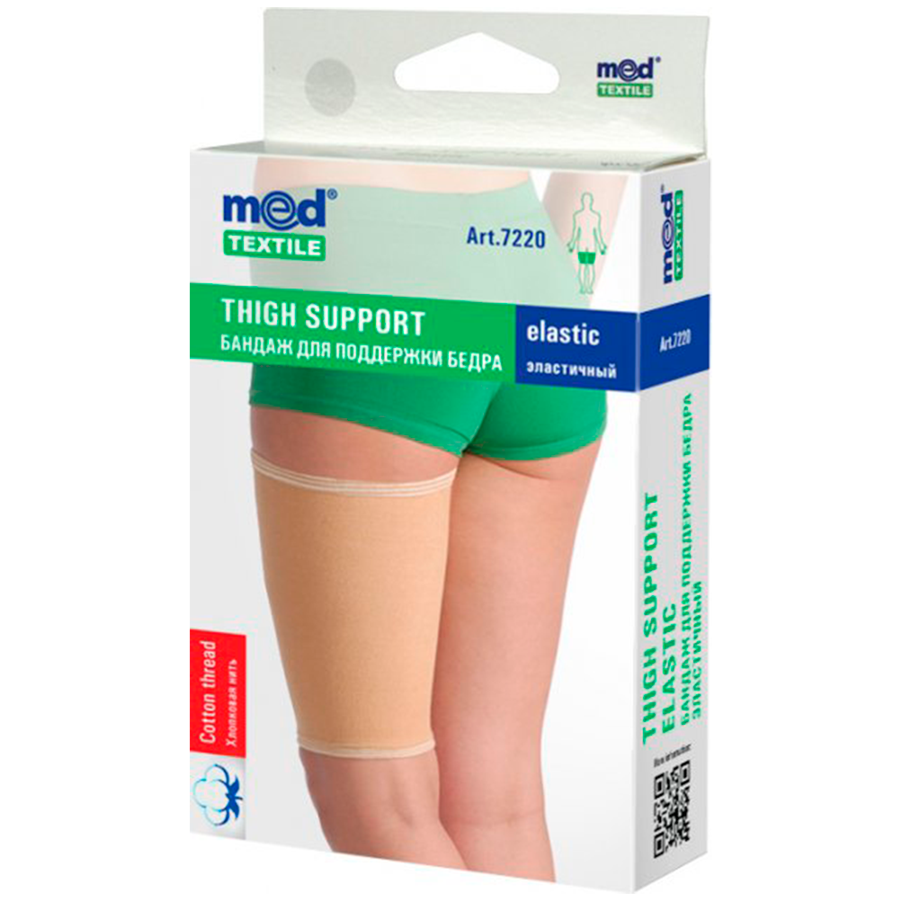 Обеспечивает мягкую фиксацию и компрессию бедра и обладает согревающим эффектом. Наличие натуральной хлопковой нити и анатомическая форма обеспечивает дополнительный комфорт даже при длительном использовании, подходит для правой и левой ноги. Правильная закладка краев предотвращает натирания кожи.