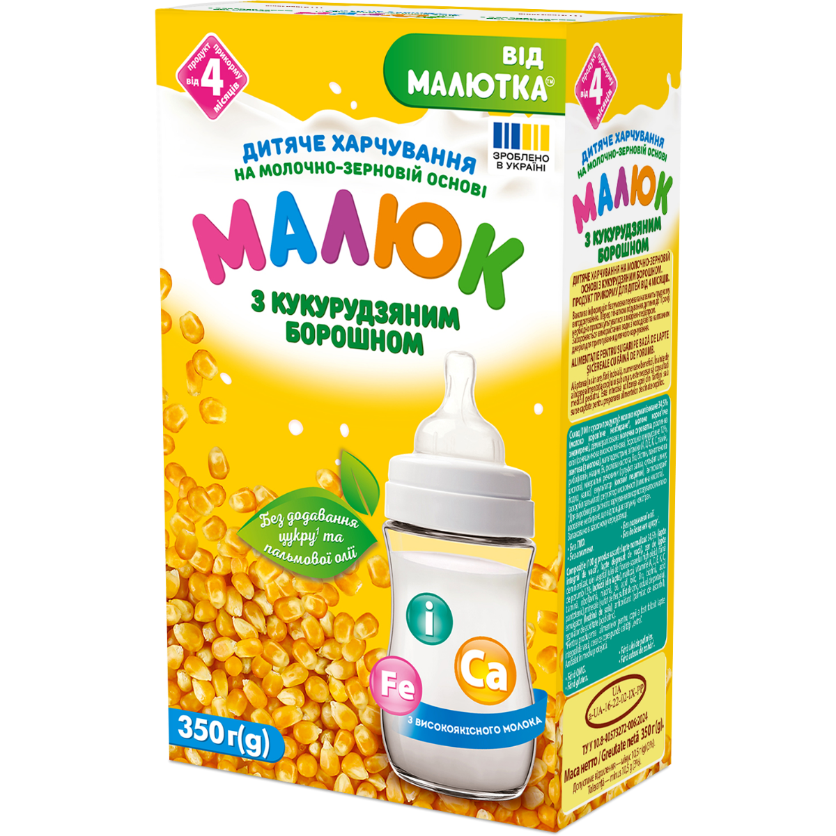 Детское питание Малюк на молочно-зерновой основе с кукурузной мукой с 4 месяцев, 350 г