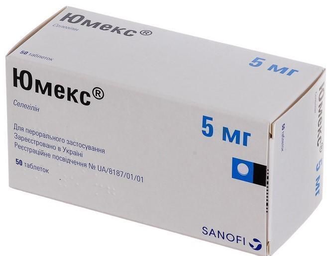 Юмекс является селективным ингибитором МАО-В, который ингибирует распад допамина в мозге. Он также ингибирует обратный захват допамина пресинаптическими допаминовых рецепторов. Эти действия потенцируют допаминергические функцию в мозге, смягчают и удлиняют эффект экзогенного или эндогенного допамина. Проведенные исследования продемонстрировали, что применение Юмекс для лечения больных, ранее не лечились, может отсрочить развитие инвалидности, а также начало лечения леводопой. Юмекс потенцирует и пролонгирует действие леводопы при лечении паркинсонизма. Придания Юмекс к леводопы (с или без ингибитора декарбоксилазы) помогает смягчить суточные колебания двигательной активности и ухудшение состояния больного, связанное с окончанием действия дозы. Юмекс не может применяться для лечения больных с экстрапирамидными синдромами, которые не сопровождаются дефицитом допамина (идиопатический тремор, хорея Гентигтома).