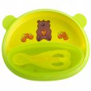 Набор для кормления состоит из секционной тарелочки, контейнера с крышкой, ложечки и вилочки. Посуду можно использовать в микроволновой печи и мыть в посудомоечной машине. Посуда Baby team изготовлена из высококачественных и безопасных материалов, а также не содержит вредных веществ и Бисфенол А.