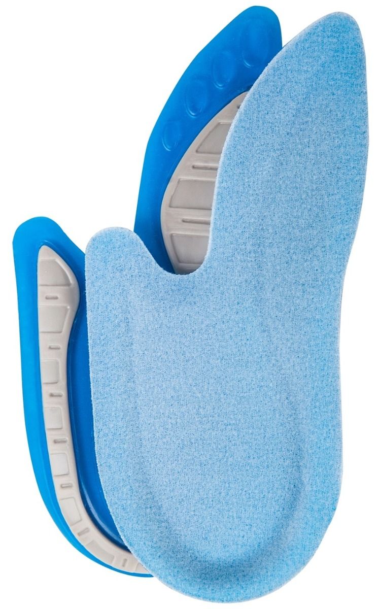 Гелевый подпятник с поддержкой продольного свода стопы, сверху покрыт тканью.