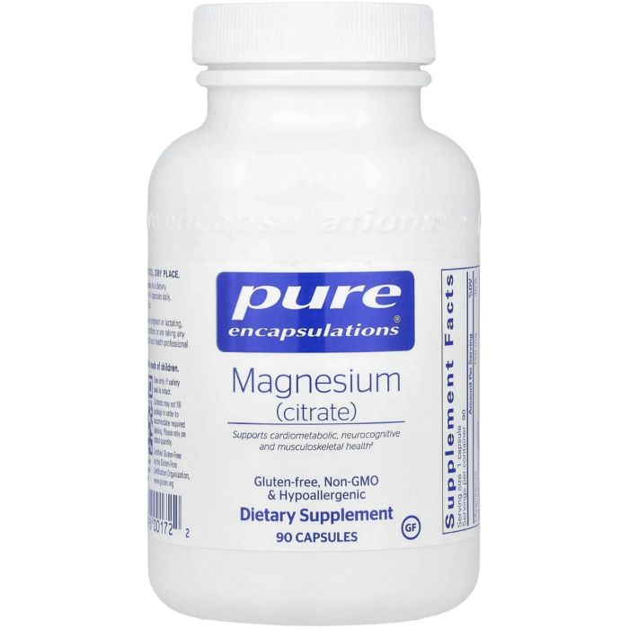 Pure Encapsulations Магний цитрат 150 мг – это высоко биодоступная форма магния, которая легко усваивается и поддерживает работу нервной системы, мышц и сердечно-сосудистого здоровья. Магний в форме цитрата также помогает снизить усталость, напряжение и способствует нормализации сна.