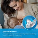 Соска пустышки изготовлена из неоднородного слоя силикона, благодаря чему она растягивается и сжимается в соответствии с ритмом сосания ребенка.