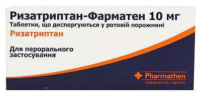 действующее вещество: ризатриптан;1 таблетка, диспергируется в ротовой полости, 5 мг или 10 мг ризатриптану (в виде ризатриптану бензоата);