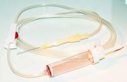 Плавное регулирование скорости переливания от капельного до струйного режима обеспечивается роликовым зажимом.