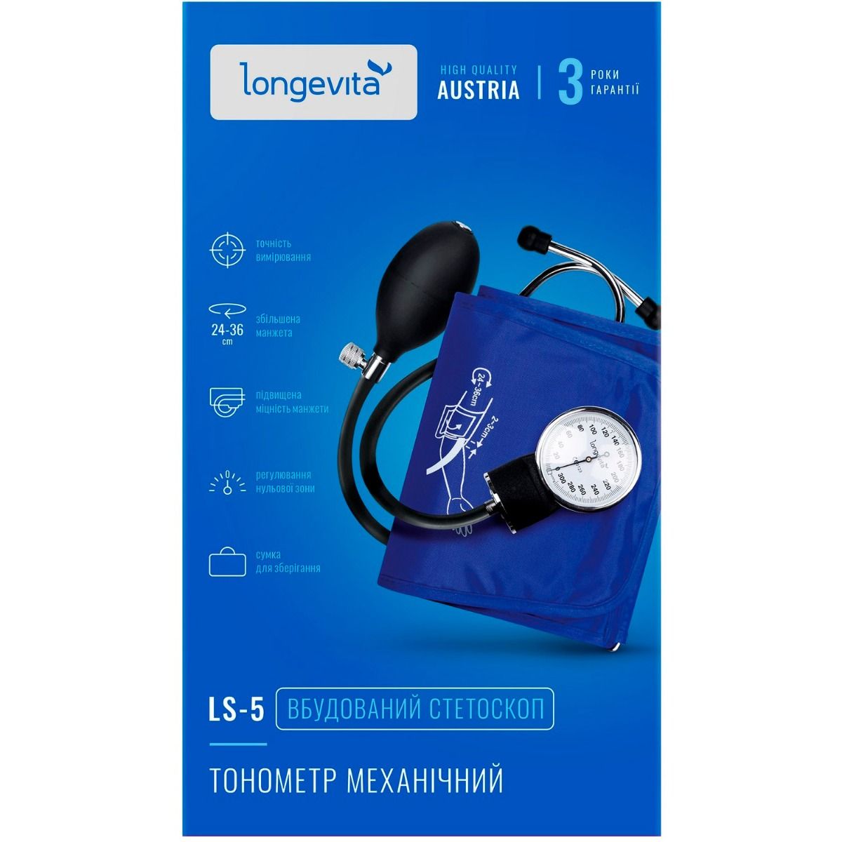 Механический тонометр Longevita LS-5 - надежный и точный прибор для измерения давления, поставляется со стетоскопом, встроенным в манжету.