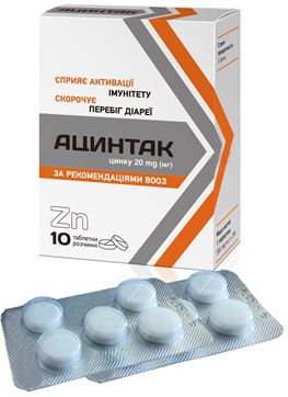 Добавка дієтична ацинтак забезпечує дотримання добового дозування цинку, яке відповідає рекомендаціям Всесвітньої організації охорони здоров’я (ВООЗ, 2004) стосовно послаблення перебігу діареї.