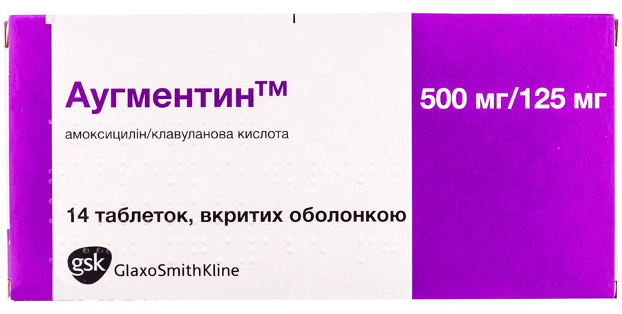 Аугментин 500 мг/125 мг таблетки №14