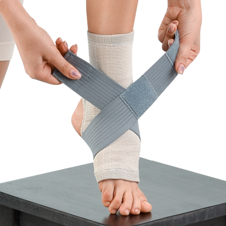 Бандаж на гомілковостопний суглоб забезпечує легкий ступінь фіксації суглоба. Ремінь-затягування додатково стабілізує суглоб. Завдяки еластичності матеріалу, з якого виготовлений бандаж, в області його впливу створюється тиск, що перешкоджає утворенню набряку (якщо раніше нога травмована). Додавання бавовни робить виріб приємним на дотик. Бандаж досить тонкий, щоб його було зручно носити у взутті.