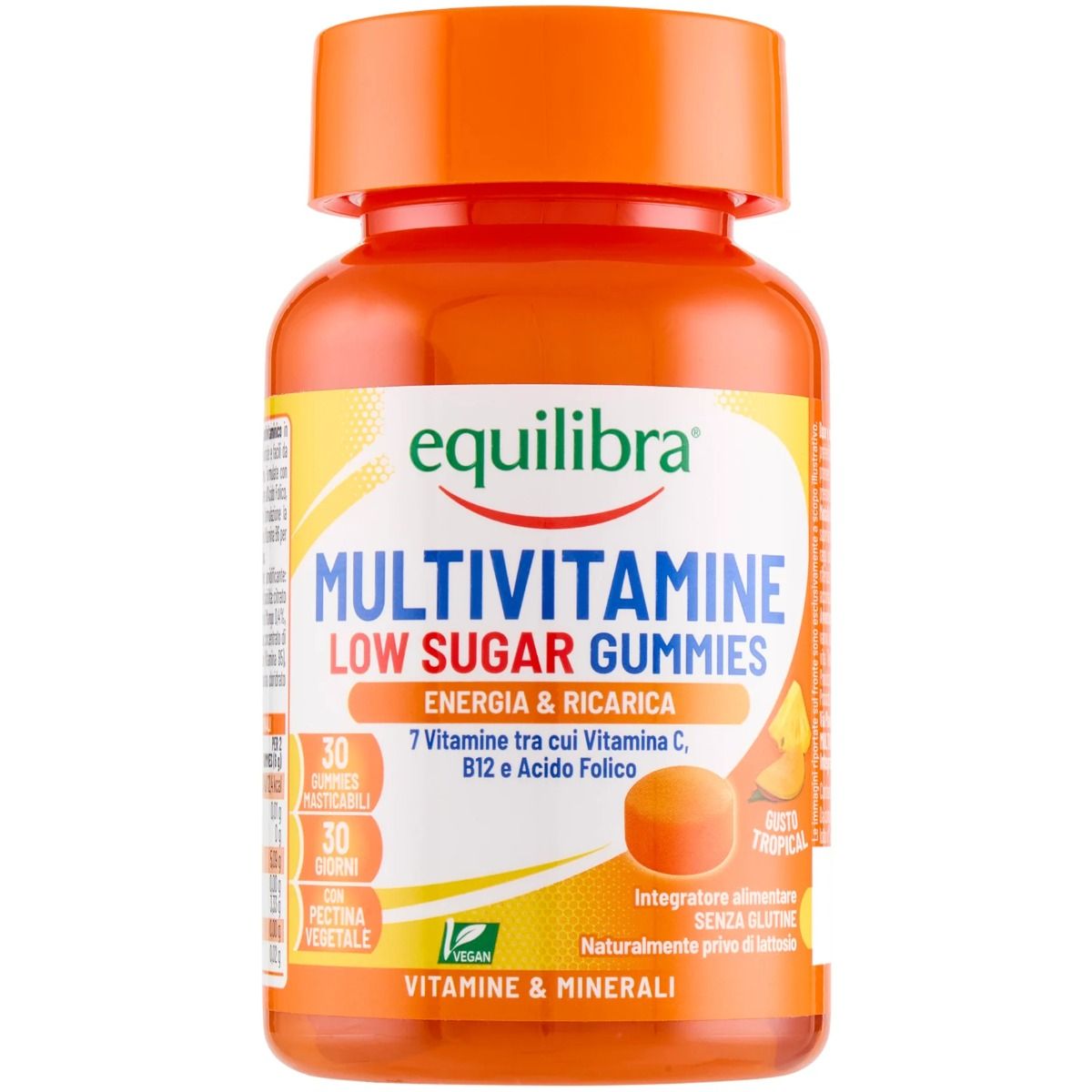 Multivitamine Low Sugar Gummies Equilibra® — жувальні мультивітамінні пастилки з тропічним смаком, призначені для щоденної підтримки енергії та життєвого тонусу. Завдяки м’якій текстурі легко вживаються без необхідності запивати водою. Формула є веганською та має знижений вміст цукру.