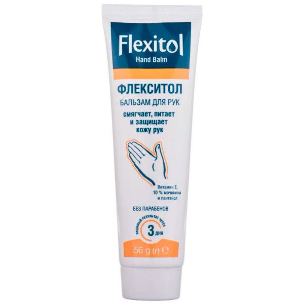 Бальзам для рук від бренду «Флексітол» створений на основі натуральних, цінних компонентів, покликаних доглядати епідерміс. У складі міститься сечовина та олія Ши, а також пантенол, що загоює наявні пошкодження на шкірі.