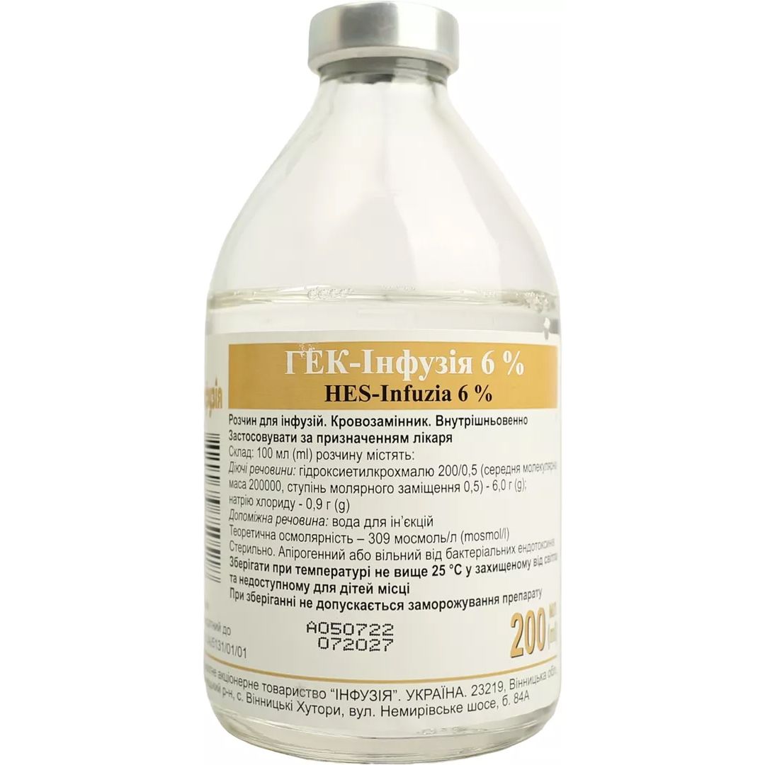 ГЕК-Інфузія 6% розчин для інфузій 200 мл Інфузія ЗАТ (Україна, Київ)