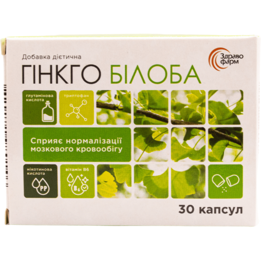 «Гінко білоба» - дієтична добавка виробництва компанії «Здравофарм», що є природним джерелом біологічно активних рослинних компонентів.