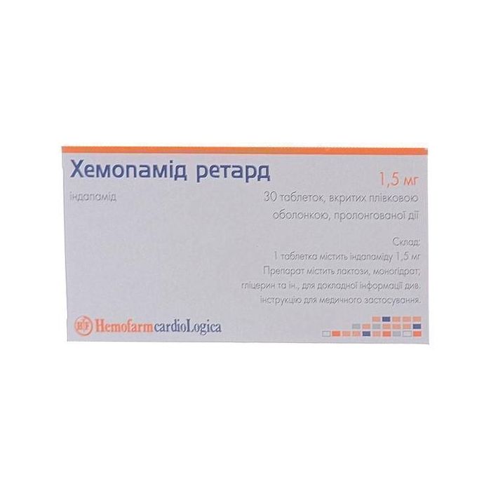 Активна речовина – індапамід 1 5 мг – знаходиться у таблетці пролонгованої дії яка створена на основі гідрофільного матриксу. Розподілення індапаміду у системі матриксу забезпечує рівномірне вивільнення індапаміду з таблетки.