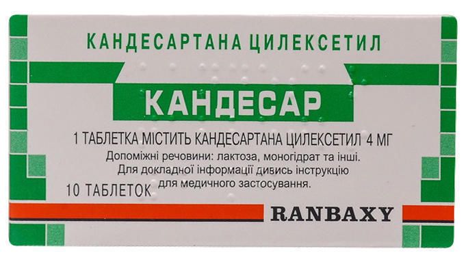 Фармакодинаміка. Кандесартан блокує судинозвужувальний та альдостеронсекретуючий ефекти ангіотензину II шляхом селективного блокування зв’язування ангіотензину II з рецепторами AT1 у більшості тканин таких як гладкі м’язи судин та надниркових залоз. Тому його дія не залежить від механізму синтезу ангіотензину II. У багатьох тканинах існує також AT2-рецептор проте він не бере участі у серцево-судинному гомеостазі. Кандесартан має набагато більшу спорідненість із рецептором AT1 (10 000 разів) ніж з AT2. Механізм блокування ренін-ангіотензинової системи АПФ-інгібіторами що пригнічують біосинтез ангіотензину II з ангіотензином I широко застосовується при лікуванні артеріальної гіпертензії. АПФ-інгібітори також пригнічують розпад брадикініну що каталізується АПФ. Оскільки кандесартан не пригнічує АПФ (кініназу II) він не впливає на метаболізм брадикініну. Кандесартан не зв’язується та не блокує інші рецептори гормонів чи іонні канали що беруть участь у регуляції артеріального тиску. Блокада рецепторів ангіотензину II пригнічує негативний регуляторний вплив ангіотензину II на секрецію реніну однак підвищення активності реніну в плазмі та рівня ангіотензину II що циркулює в крові не перевищує впливу кандесартану на тиск крові.
