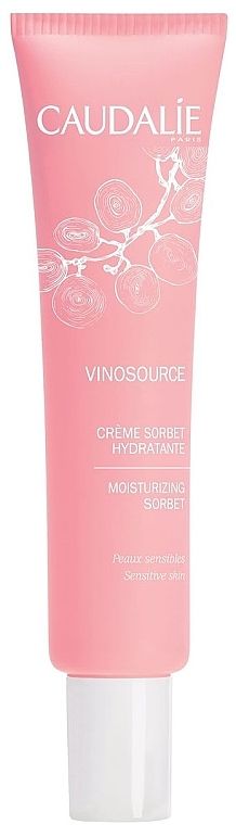Цей крем-гель при контакті зі шкірою перетворюється в воду завдяки технології «quick break», заспокоюючи, зволожуючи і зміцнюючи її. Крем Сорбет Vinosource підсилює природні захисні властивості шкіри, яка реагує на подразнення, послаблює її чутливість і відновлює водний баланс. Крем усуває відчуття стягнутості шкіри і відновлює її природні ресурси. З кожним днем відчуття комфорту тільки посилюється. Її водна текстура, свіжа, як сорбет, тане на шкірі. Тонкі цитрусові нотки в її ароматі переплітаються з освіжаючим букетом з квітів мандарина, листя лимонного дерева, огіркової води і свіжої м'яти