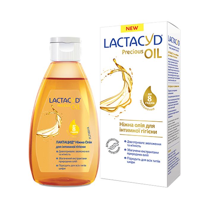 Лактацид Ніжна олія для інтимної гігієни ‒ це засіб для екстрам’якого очищення інтимної зони. Його склад збагачений екстрактами природних олій та спеціально розроблений для поєднання м’якого очищення та зволоження шкіри. Ваша шкіра буде м’якою, гладенькою та зволоженою. До 8 годин відчуття ніжної, як шовк, шкіри!