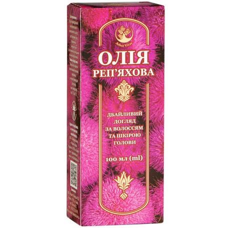 Олія реп'яхову дуже цінний натуральний помічник у догляді за тілом і волоссям. Містить безліч унікальних компонентів. У його складі мінерали, вітаміни, кальцій, цинк, залізо. Завдяки їм масло надає сприятливу дію. Допомагає живити шкіру, захистити від сухості і тріщин, нормалізує жировий баланс, допомагає швидше засвоювати вітаміни. Маслом можна змащувати найніжніші ділянки, наприклад, шкіру повік або декольте. Цей захистить від пересихання і появи зморшок. Крім того, реп'яхову олію незамінний компонент догляду за волоссям.
