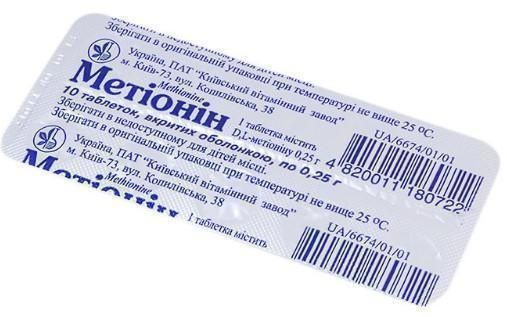Метіонін 0,25 г таблетки №10 Київський вітамінний завод ПАТ (Україна, Київ)