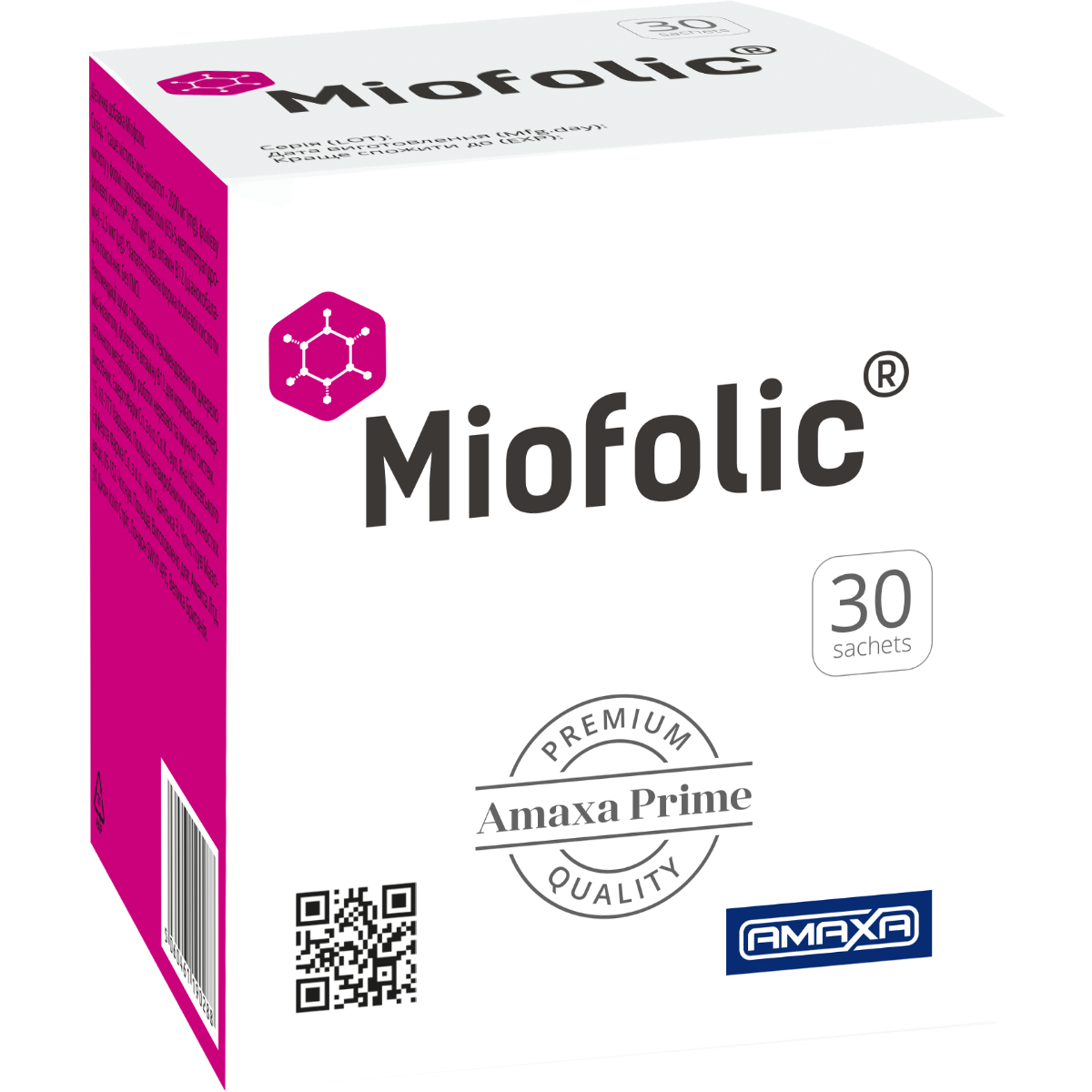 Фолієва кислота у складі Міофолік представлена у вигляді 5-метилтетрагідрофолату – метаболічно активної форми, яка не потребує додаткових перетворень в організмі, на відміну від звичайної фолієвої кислоти.