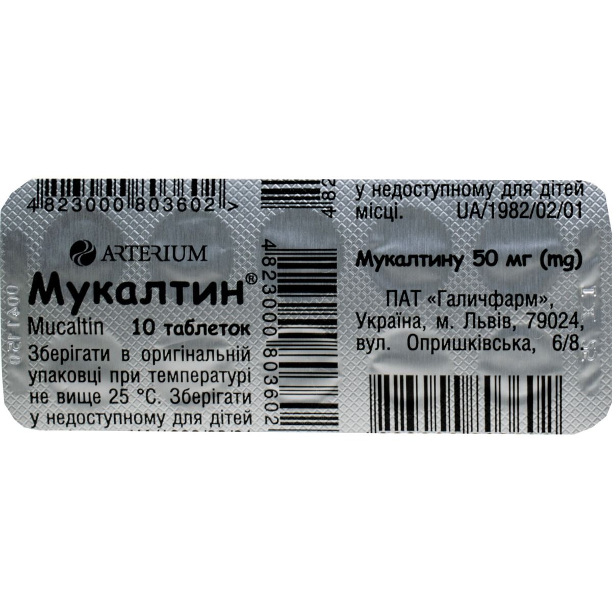 діюча речовина: 1 таблетка містить мукалтину 50 мг;