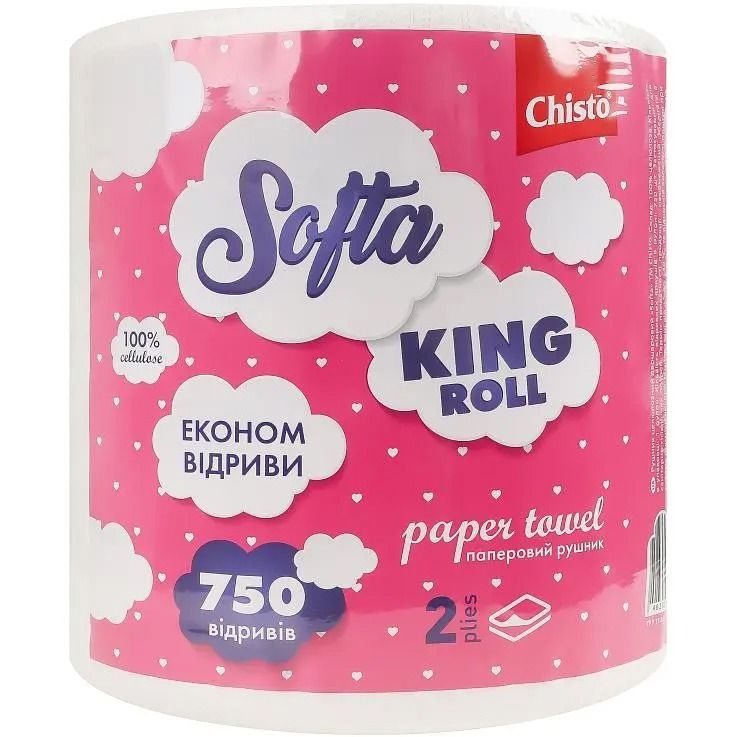 Паперовий рушник Chisto Softa King Roll з 750 економ відривами - це ідеальне рішення для тих, хто шукає економічний та ефективний спосіб підтримувати чистоту в будь-яких умовах.