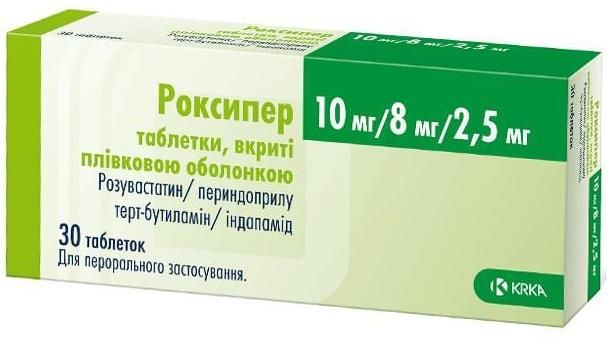 | Головний медикамент | Розувастатин, периндоприл, індапамід |