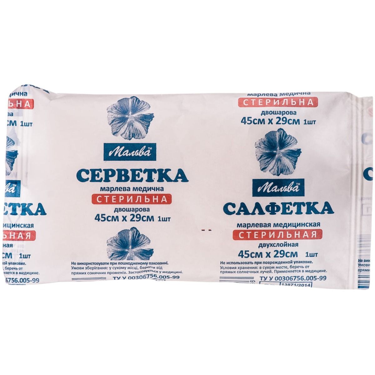 Серветки марлеві стерильні Мальва 45 см х 29 см медичні, 2 складання №1 Ватфарм ВАТ (Україна, Черкаси)