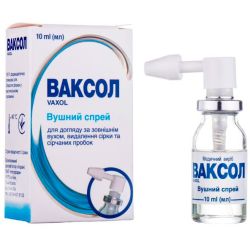 Спрей Ваксол, средство для очищения и лечения слуховых каналов. Благодаря анатомически правильному колпачку-распылителю, средство распределяется по всей поверхности ушного канала и быстро впитывается, а сера выходит, не задерживаясь.