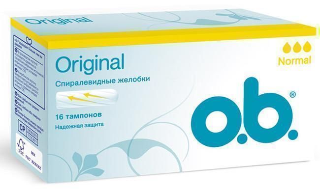 Спіралеподібні жолобки o.b. розроблені для ефективного проведення рідини всередину тампона для Вашого відчуття надійного захисту. o.b. Original Normal рекомендується для днів зі слабкою або середньою інтенсивністю виділень.
