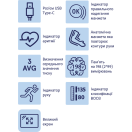 - індикатор руху - якщо людина ворушиться під час виміру, що може привести до неточних результатів, пристрій повідомляє про це;