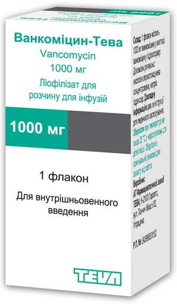 Ванкоміцин 1000 мг ліофілізат для розчину для інфузій №1 TEVA (Угорщина)