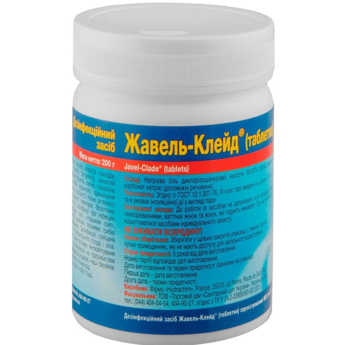 Жавель-Клейд представляет собой концентрированное средство в форме таблеток белого цвета, хорошо растворимых в воде.